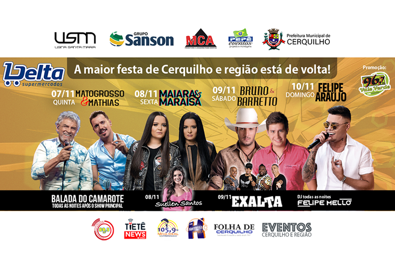 Este ano alem de contar com, rodeio em touros ,praça de alimentação,parque de diversões o publico contará também com mega shows aonde estarão se apresentando: