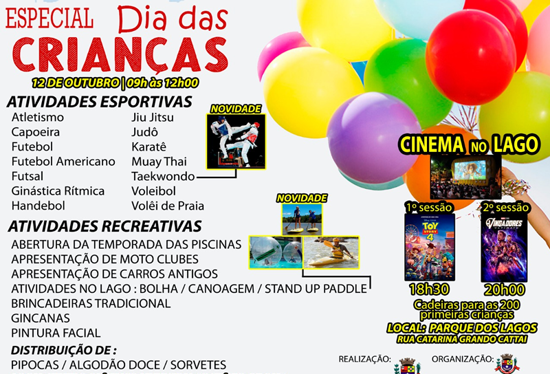 Especial Dia das Crianças em Cerquilho tem atividades no Lago do Centro Olímpico e Cinema no Parque dos Lagos